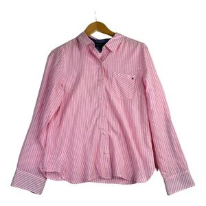 Tommy Hilfiger Women's Pink Stripe Button Down Shirt Size Medium