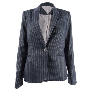 Tommy Hilfiger Women's Pinstripe Peak-Lapel Blazer (0, Indigo/Ivory)