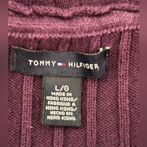 Tommy Hilfiger Womens Plum Ribbed Sweater Cable Knit Red White Blue Accent Large