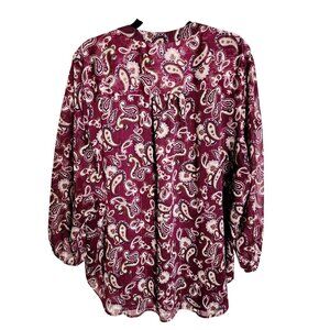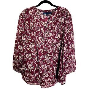 Tommy Hilfiger Womens Plus 1X Long Sleeve Boho Classic Paisley Blouse - EUC