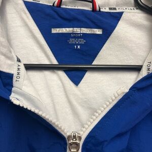 Tommy Hilfiger Women's Plus Size 1X Blue and White Coat Rain Jacket GUC
