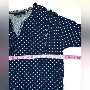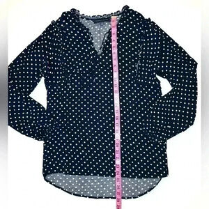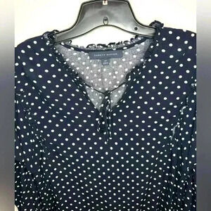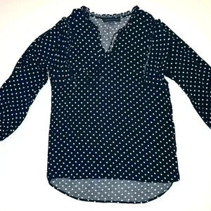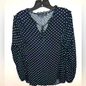 Tommy Hilfiger Womens Polkadot Navy/White Ruffle Blouse Size Small