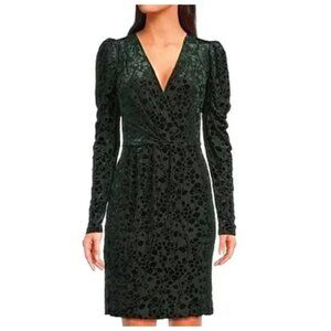 Tommy Hilfiger Womens Puff Sleeve V-Neck Burnout Velver Floral Dress Sz 14 Green