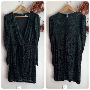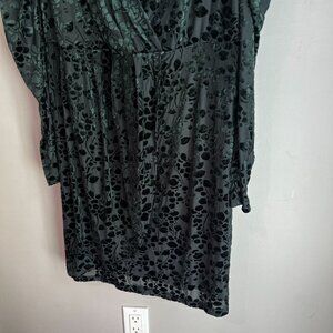 Tommy Hilfiger Women's Puff Sleeve V-Neck Burnout Velver Floral Dress Sz 14 Green