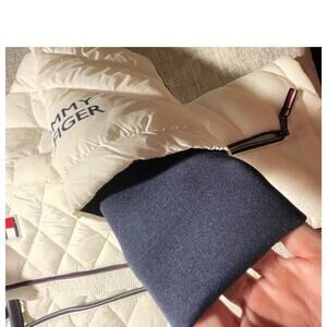Tommy Hilfiger Women’s Puffer Jacket - S - White Quilted Hooded Logo Zipper -EUC
