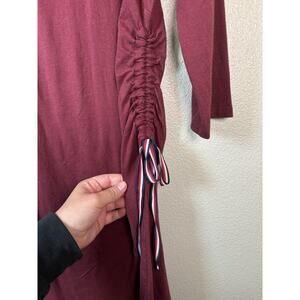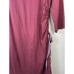 Tommy Hilfiger Women's Red Maroon T Shirt Dress 3/4 Sleeves Side Ruching Large
