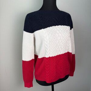 Tommy Hilfiger Womens Red White & Blue Americana Cable Knit Sweater Size S/P