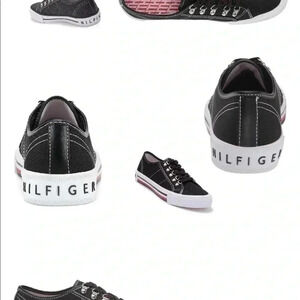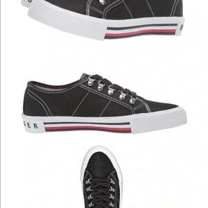 Tommy Hilfiger Women’s Red, White, & Blue Black Canvas Tie Tennis Shoes …