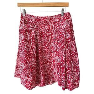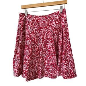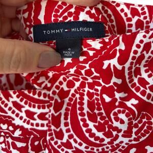 Tommy Hilfiger Women's Red and White Paisley Pleated Skirt Size 4 Preppy