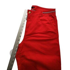 The Tommy Hilfiger Women's Relaxed Fit Hampton Chino Wide-Leg Pants THFLEX in size 16 are a stylish and versatile addition to any woman's wardrobe. Made from comfortable cotton twill fabric with a stretch for added flexibility, these pants are perfect for casual occasions. The wide-leg style and relaxed fit offer a trendy and comfortable option for all-day wear. The classic chino design in a solid red color and flat front detail make these pants a timeless and practical choice for the modern woman.