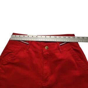 These Tommy Hilfiger Women's Relaxed Fit Wide-Leg Crop Pants in red, size 4, are perfect for a casual occasion. Made from twill fabric with a stretch feature, these cropped pants have a button closure and a straight leg style. The 26-inch inseam and flat front design make them comfortable and stylish for all seasons. Whether you're dressing for winter, summer, fall, or spring, these Tommy Hilfiger pants are a versatile addition to your wardrobe.