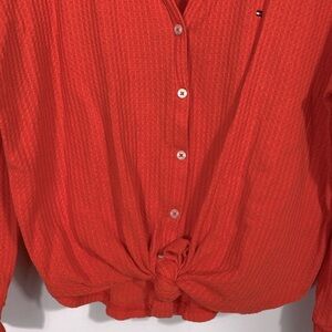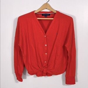 🌸Tommy Hilfiger Womens Ribbed Button Front Top Red Medium