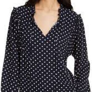 Decked out in polka dots, this blouse from Tommy Hilfiger features a frilly ruffle neck and blouson sleeves.
