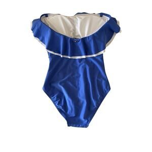Tommy Hilfiger Women's Ruffled Flounce Blue Strapless One-Piece Swimsuit Size 6