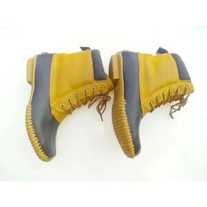 Tommy Hilfiger Womens Russel Rain Boots Yellow Color Block Lace Up Duck Toe 9Shoes are in good pre-owned condition. See pictures for full detail of the condition Thank you!Brand: Tommy HilfigerStyle: Rain Boots Color: YellowHeel Height: Low Heel (1-1.9 In)Upper Material: RubberSecondary Color: BlackBoot Shaft Height: AnkleSold as pictured. Thanks for looking! This listing was easily created using the SellHound Posting App!
