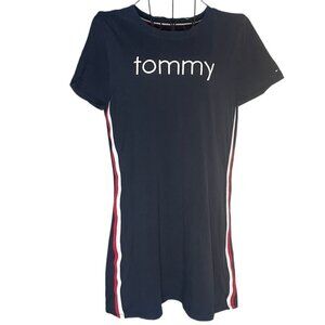Tommy Hilfiger Women's S Logo Tee Shirt Dress Navy Red Track Stripe Sporty