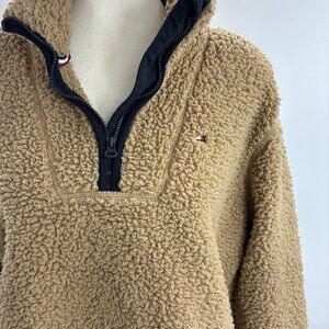 Tommy Hilfiger Womens S Tan Sherpa Fleece 1/4 Zip Pullover Jacket Long Sleeve