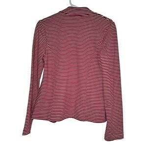 This Tommy Hilfiger women’s jacket is a standout piece with crisp style and thoughtful detail. Featuring bold horizontal red and white stripes, this long sleeve jacket is made from a comfortable 95% cotton / 5% elastane blend with a bit of stretch. While the bright red may appear slightly pink in photos, it is vibrantly red in person.