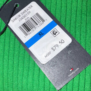 Tommy Hilfiger Women's Sailor-Neck Ribbed Sweater Cotton Blend Green XL NWT