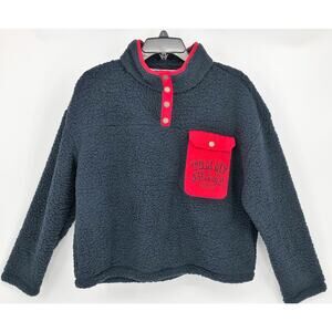 Tommy Hilfiger Womens 1/4 Snap Sherpa Sweater L Navy Blue Pullover Crop