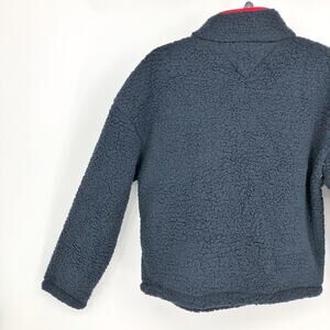 Tommy Hilfiger Womens Sherpa Jacket Large Navy Blue Pullover 1/4 Snap NWT