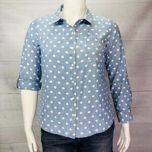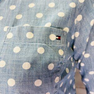 Tommy Hilfiger Womens Shirt Chambray Polka Dot Roll-Tab Sleeve Button Up Size L