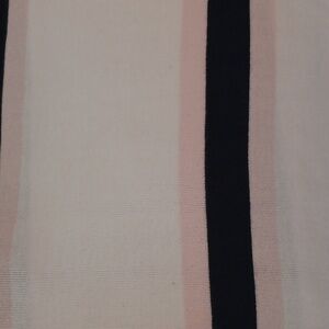 Chic short sleeve top with a V-neck design. Features pink and black stripes. Ideal for casual wear. See photos for details (a couple tiny dark spots)