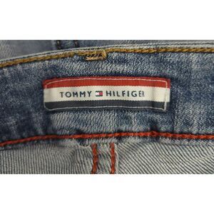 For sale is this pair of Tommy Hilfiger Women's Size 0 Boyfriend Blue Denim Patchwork Jeans Pre-Owned. Slight wear in the bottom hem. Please view all photos as they are part of the description and show condition. Comes from a Smoke-Free/Pet-Free Shop.