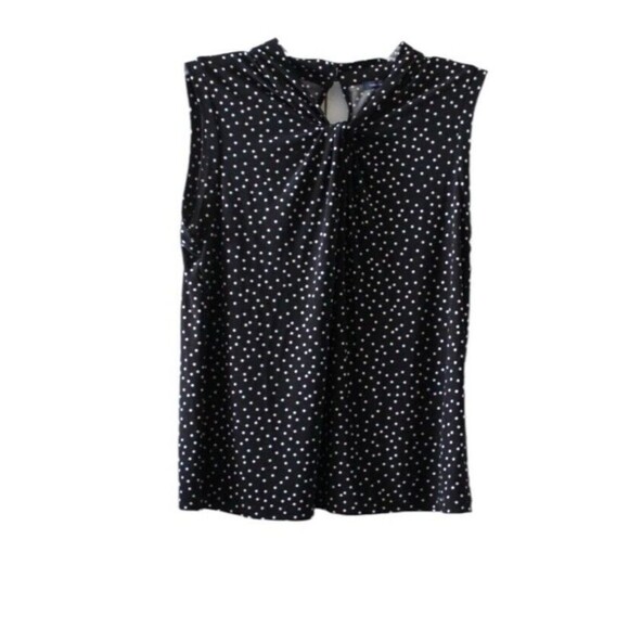 Tommy Hilfiger black and white polka dot tank top.Keyhole neck. Fabric is 95% polyester and 5% spandex.Womans size Large.