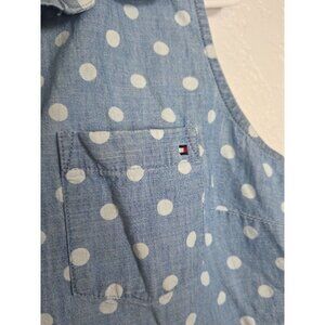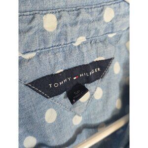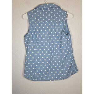 Tommy Hilfiger Womens Sleeveless Blue Denim Polka Dot Button-Up Shirt Small