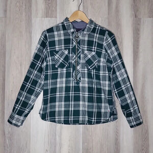 Tommy Hilfiger Womens Small Green Plaid Roll Tab Sleeve Half Zip Collared Top
