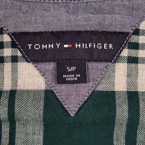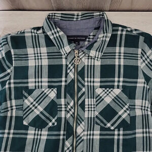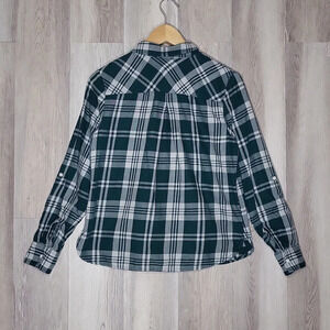🛍Tommy Hilfiger Womens Small Green Plaid Roll Tab Sleeve Half Zip Collared Top