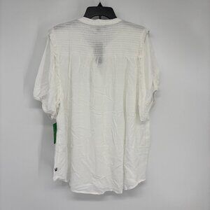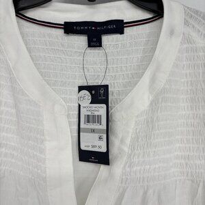 Tommy Hilfiger Women's Smocked Woven Ruffle Trim Button Up Shirt White 1X NWT