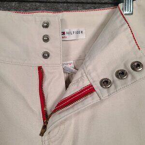 Tommy Hilfiger Women's Straight Legged Jeans Size 8 Cream in Color. Jeans have 3 snap buttons and a zipper.