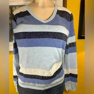 Tommy Hilfiger Women’s Striped Blue V-neck Sweater