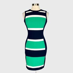 Tommy Hilfiger Womens Striped Colorblock Sheath Dress Green Blue size 4