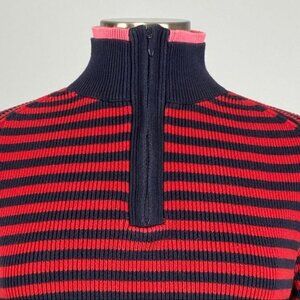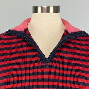 Tommy Hilfiger Womens Striped Red Blue Sweater Quarter Zip Collar size Large