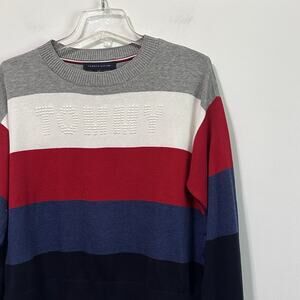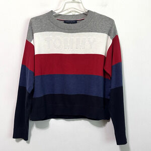 Tommy Hilfiger Womens Striped Sweater S Bubble Logo Long Sleeve Knit Preppy FLAW