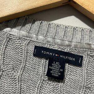Tommy Hilfiger Women's Sweater Cable Knit V Neck 100% Cotton Size Large