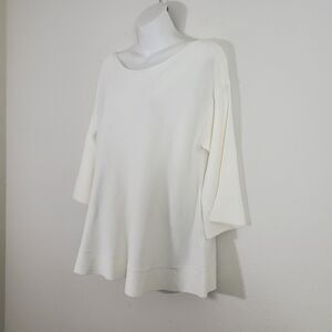 Tommy Hilfiger women's sweater - pullover, round neckline, 3/4 flare sleeves and a flowy fit. Ivory white.