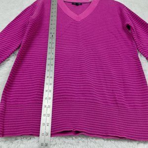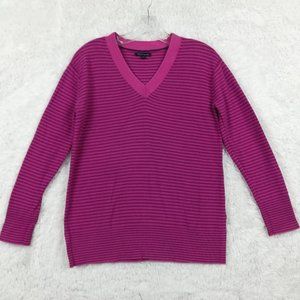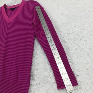 Tommy Hilfiger Womens Sweater Pullover Pink Purple Striped Long Sleeve V Neck S