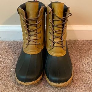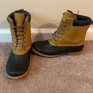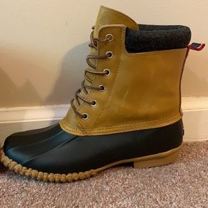 Tommy Hilfiger Women’s Tan & Navy Blue Duck Boots/Laced Rain Boots Size 8