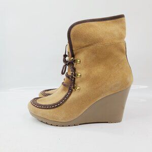 Tommy Hilfiger Women's Tan Zaria Leather Fold Over Faux Fur Heeled Boots Sz 7.5M