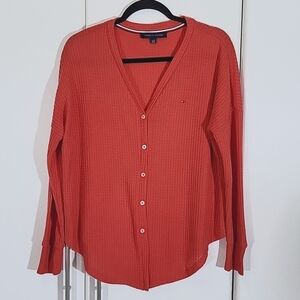 Tommy Hilfiger Women's Tie Front Waffle Cardigan Sweater Size Small