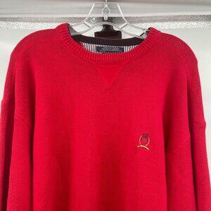 Tommy Hilfiger Womens Tight Knit Sweater Long Sleeve Red/Multi Size XL Heavy