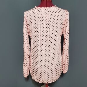 Tommy Hilfiger pink women's tunic top with black polka dots. This shirt has elastic cuffs. Size extra small.