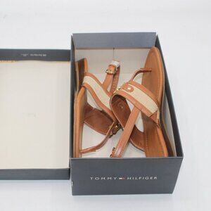 Tommy Hilfiger Women's Twjena Logo T-strap Flat Sandals Brown Size 10 Brand New