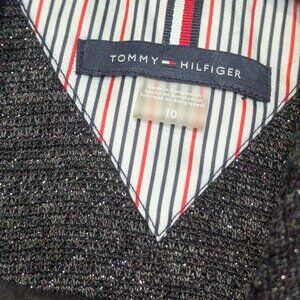 Tommy Hilfiger Womens Two Button Blazer Shimmer Black Silver Metallic, Size 10