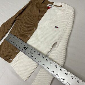 Tommy Hilfiger Womens Two-Tone Ribbed Knit Button-Up Cardigan Tan/White size S