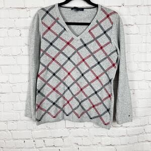 Tommy Hilfiger Women's V-Neck Sweater Size M Gray Argyle Design